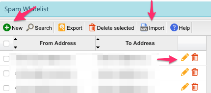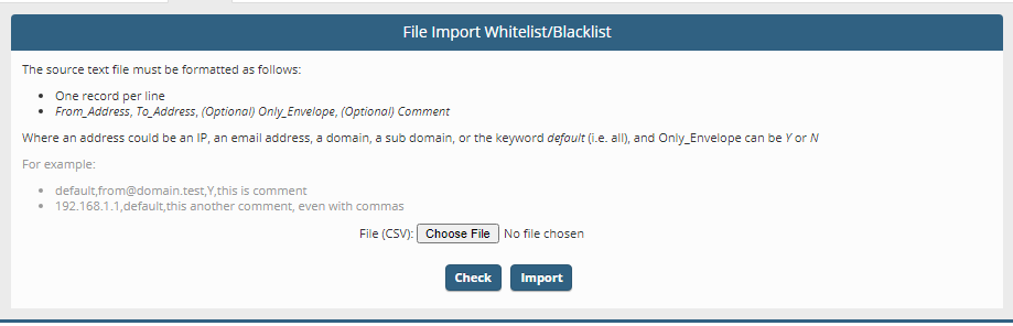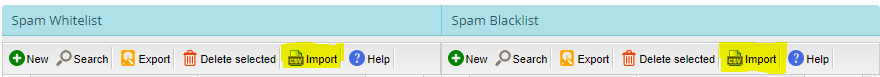 If you need to import or export many row of data for Whitelist or Blacklist , you have two dedicate functions to do that.