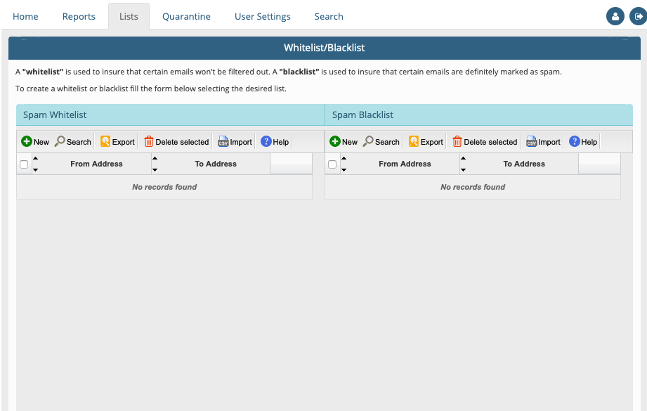 From this menù you can manage Libraesva ESG spam whitelists and blacklist.