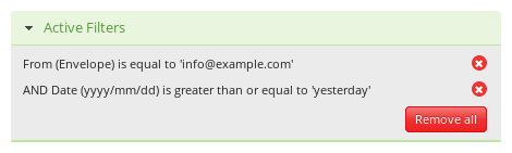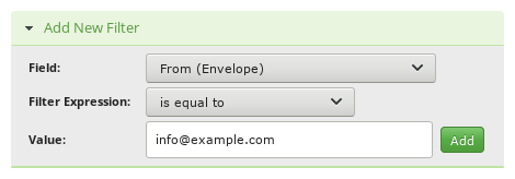 For example: to filter all messages arriving from info@example.com , we will setup: