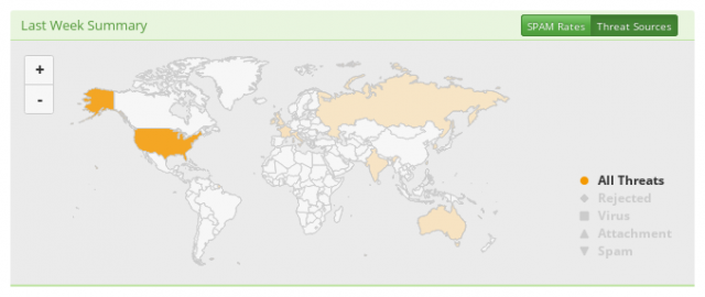 Last Week Summary: Threat sources: similar to the last week summary, but geographically distributed. Allows you to see from where all the threat are generated.