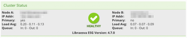 Version info: when you don’t have a cluster setup, you will see here only the current version of Libraesva ESG.