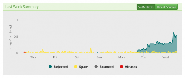 Today’s total: a detailed count of all messages received or rejected. By clicking on the magnifying-glass beside the SMTP rejected, you can see the full list of all sender rejected today.
